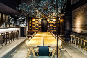 お店の象徴でもある銀杏の木のBig Table、スタッフとのコミュニケーションが楽しいBARカウンター席、